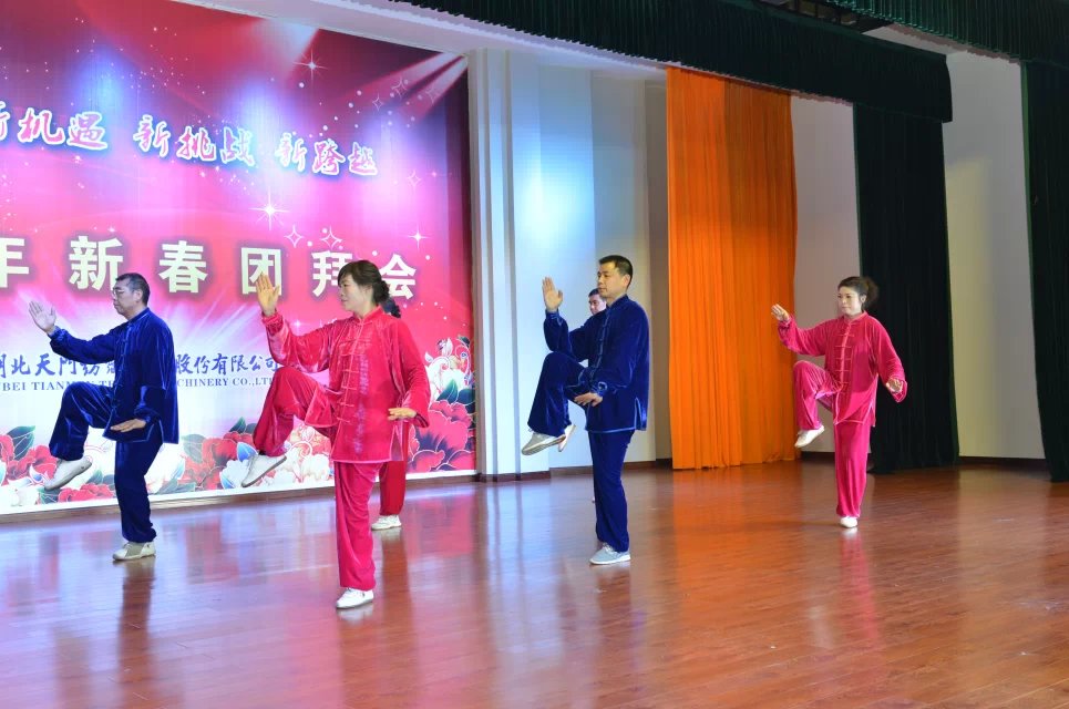 時而白鶴亮翅,時而手揮琵琶,時而如封如閉。在舒緩、輕柔的音樂聲中,由汪枝秀、沈彩虹、楊金仙、于少波、龔振軍、劉學(xué)斌表演的太極徐徐展開。他們都是太極愛好者,因為太極走到了一起,既強(qiáng)健了身體,也愉悅了身心,更增進(jìn)了彼此的了解。員工們欣賞著他們靈動的身姿,沉浸在美妙的音樂中,享受著難得的一刻輕松愜意。