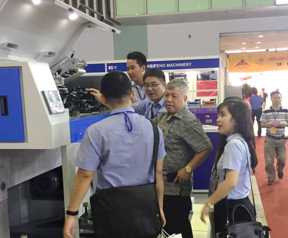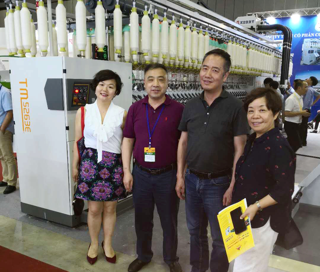在展會(huì)上,位于A2-2D-1湖北天門(mén)紡織機(jī)械股份有限公司展位人頭攢動(dòng)、客戶(hù)云集,成為整個(gè)展會(huì)的一大亮點(diǎn),VINATEX NAM DINH、VICOTEX、 成功紡織、臺(tái)灣興業(yè)、臺(tái)南紡織、東光公司等當(dāng)?shù)仄髽I(yè)負(fù)責(zé)人親赴現(xiàn)場(chǎng)參觀(guān),華孚時(shí)尚董事長(zhǎng)孫偉挺等嘉賓在天門(mén)紡機(jī)展位認(rèn)真觀(guān)看設(shè)備演示,詳細(xì)了解了產(chǎn)品的新性能和新工藝,對(duì)天門(mén)紡機(jī)并條機(jī)與細(xì)紗機(jī)兩款展機(jī)給與高度評(píng)價(jià)。