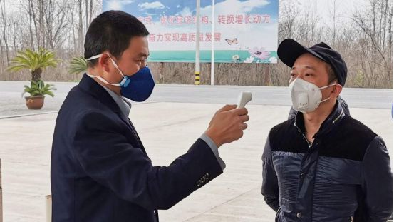 組織保發(fā)貨期間,公司在大門(mén)設(shè)置了防控崗,對(duì)進(jìn)出人員做好消毒、體溫測(cè)量記錄等防護(hù)措施