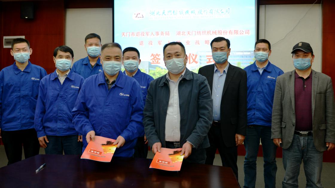 4月23日下午,天門(mén)市退役軍人事務(wù)局與天門(mén)紡機(jī)舉行退役軍人就業(yè)戰(zhàn)略合作簽約儀式,天門(mén)市退役軍人事務(wù)局副局長(zhǎng)李文超、天門(mén)紡機(jī)總經(jīng)理焦倫進(jìn)分別代表雙方簽約。
