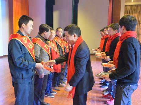 在工作中成績(jī)突出,楊吉學(xué)多次榮獲公司勞動(dòng)模范和先進(jìn)工作者榮譽(yù),圖為沈方勇董事長(zhǎng)為勞動(dòng)模范楊吉學(xué)頒獎(jiǎng)