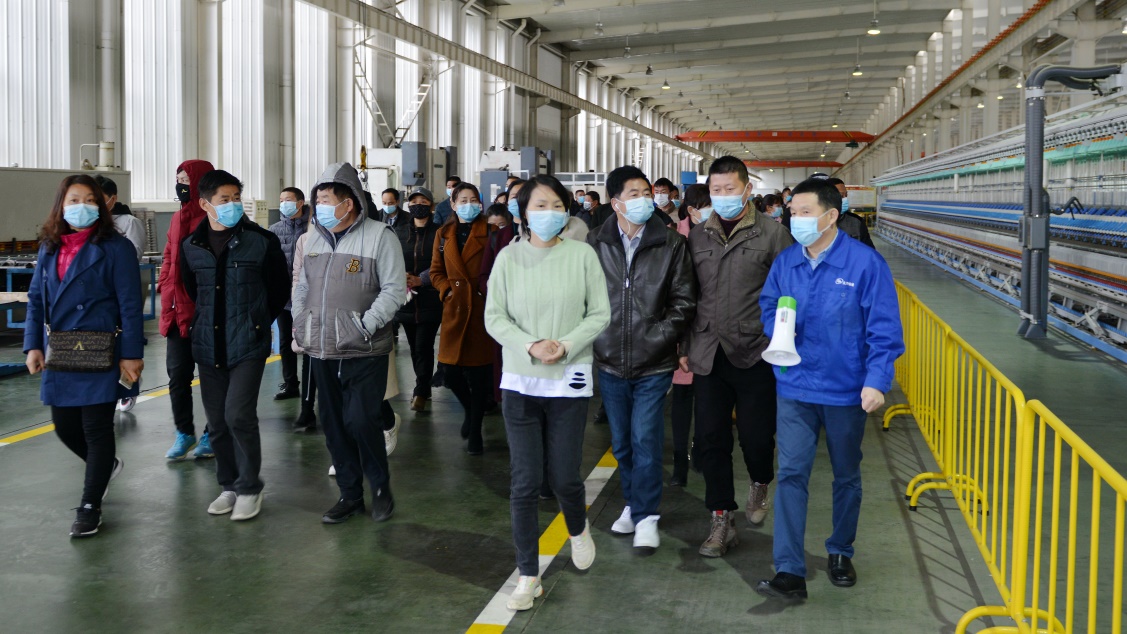 沈方勇董事長帶領求職人員參觀生產現(xiàn)場。疫情期間,天門紡機兌現(xiàn)不給黨和政府添麻煩、不給疫情防控造壓力、不給社會就業(yè)增負擔的承諾,想方設法招賢納士擴大就業(yè)。