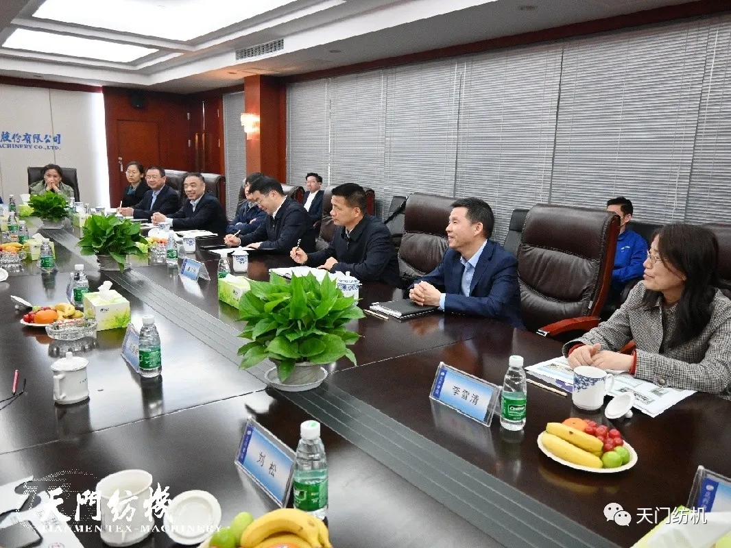 高勇書記對(duì)天門紡機(jī)的發(fā)展歷程給予了充分肯定,并希望今后堅(jiān)守并條機(jī)主業(yè),加大自主創(chuàng)新開(kāi)發(fā),依托“十四五”智能制造平臺(tái),抓住機(jī)遇,作出示范,進(jìn)一步提升紡織機(jī)械智能制造水平。