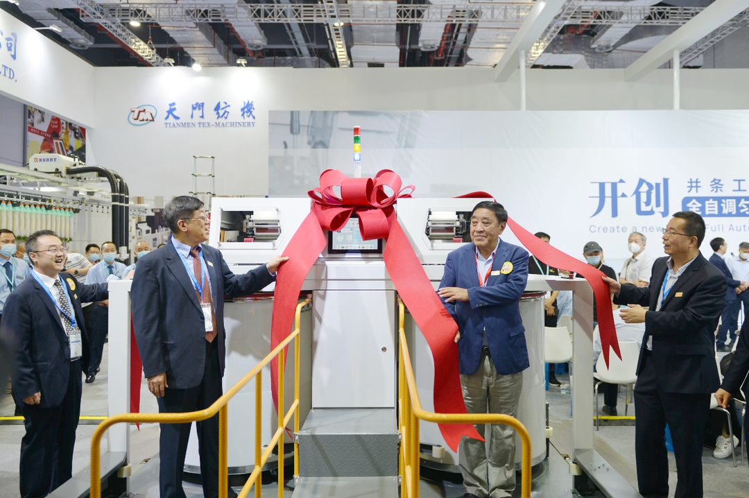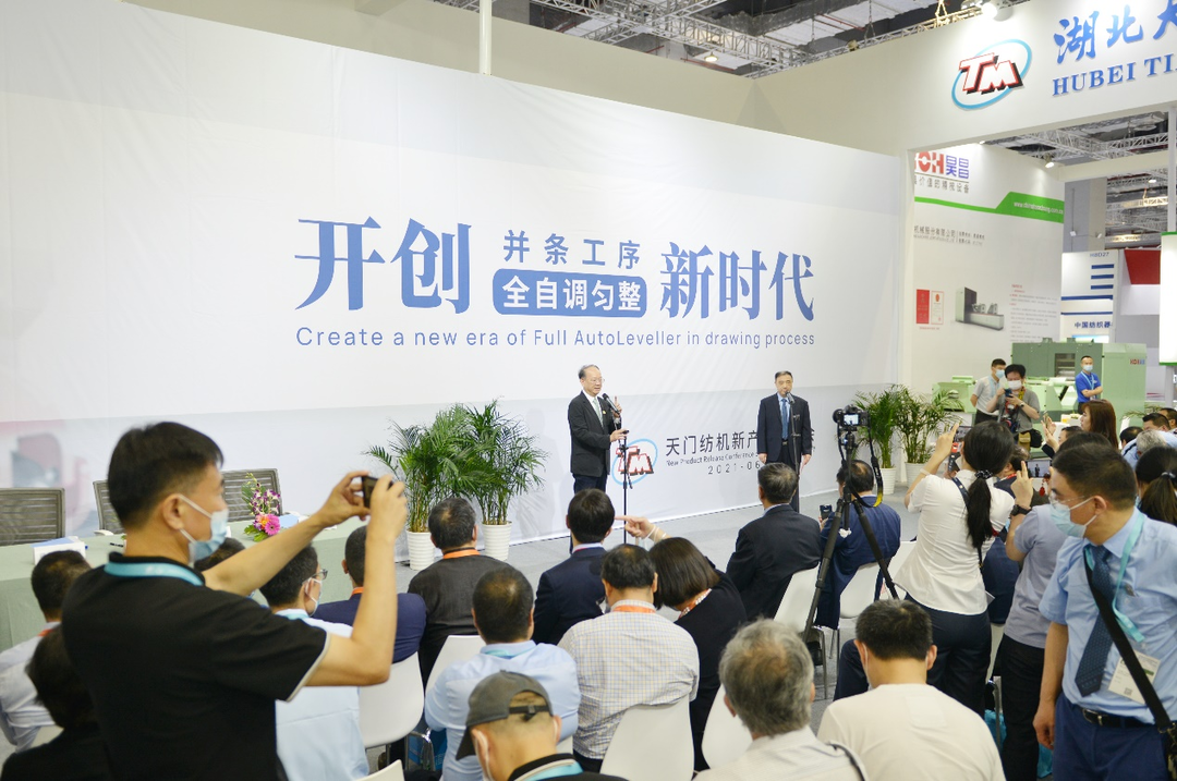 6月12日,天門紡機(jī)在上海的中國國際紡織機(jī)械展覽會(huì)暨ITMA亞洲展覽會(huì)上,舉行“開創(chuàng)并條工序全自調(diào)勻整新時(shí)代”新品發(fā)布會(huì),自主研發(fā)的全球首款超大卷裝帶自調(diào)勻整并條機(jī)TM19、運(yùn)用USG3系統(tǒng)及多項(xiàng)專利技術(shù)的并條機(jī)TM15、帶全伺服控制的多功能TM65型細(xì)紗機(jī)首發(fā)上市。