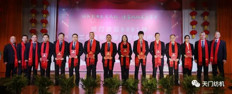 董事長沈方勇致熱情洋溢的新春賀詞,他表示,天門紡機走過了激情奮斗、碩果累累、超越自我的2021年,回首“退城進園”、轉(zhuǎn)型陣痛、市場洗禮、疫后重生的十年,公司“專精特新”的發(fā)展之路不曾改變,研、產(chǎn)、供、銷的“六高”閉環(huán)不曾動搖,“單項冠軍產(chǎn)品”的頭銜始終沒有丟失,技術(shù)創(chuàng)新度、品牌知名度、市場占有率、產(chǎn)品附加值同步提升、屢攀新高。感恩偉大祖國,感激業(yè)界同仁的支持信賴,感謝全體員工的團結(jié)拼搏、風(fēng)雨同舟、辛勤付出!