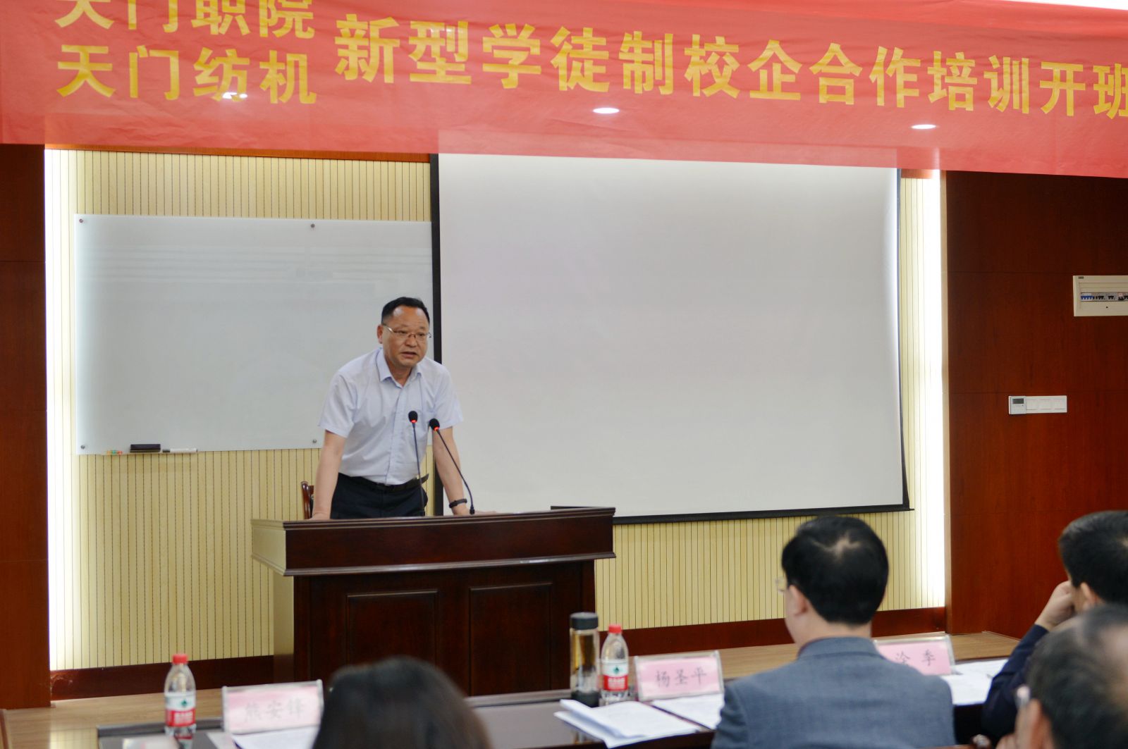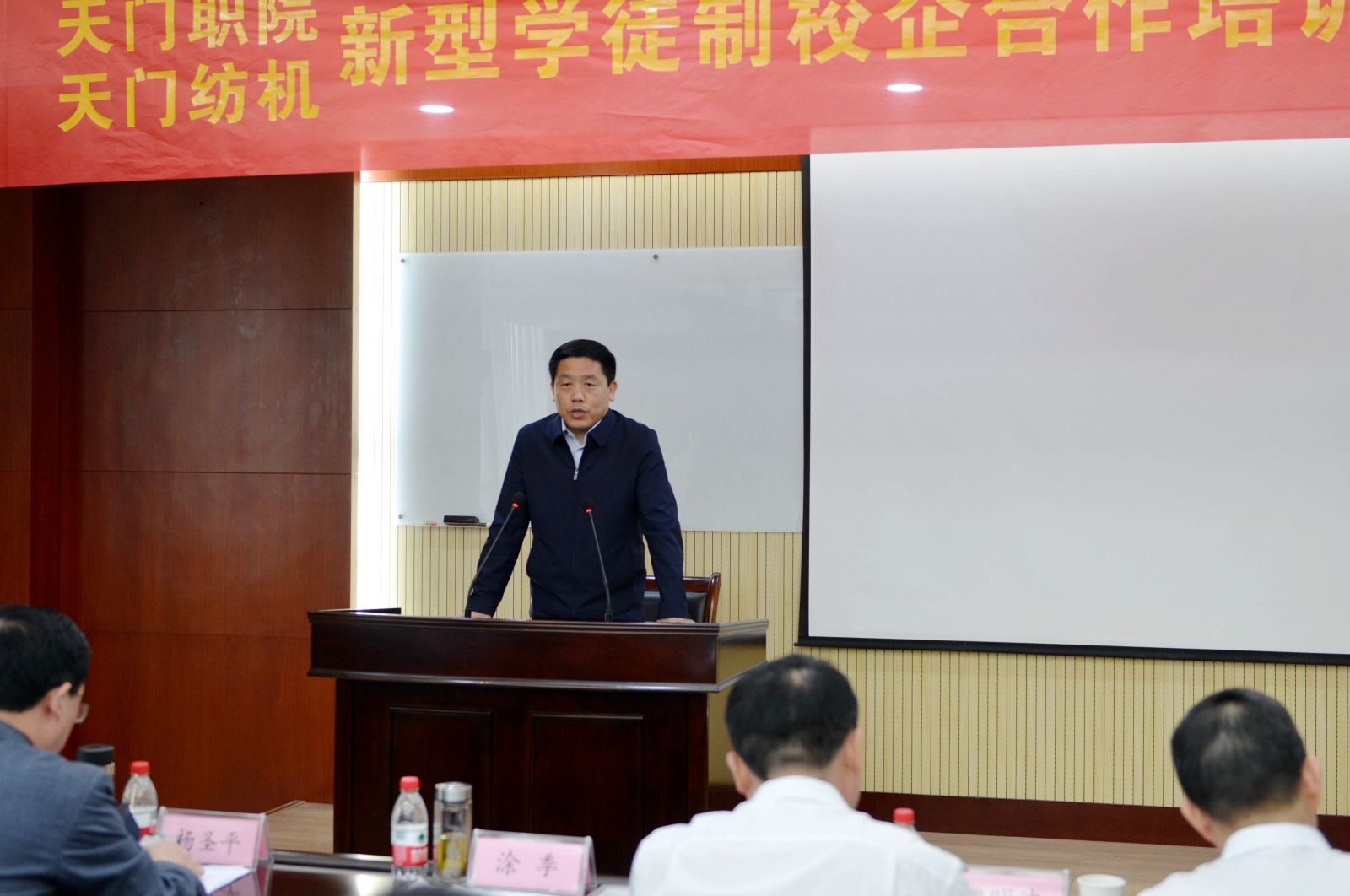 全國人大代表天門紡機董事長沈方勇在致辭中表達了對市委、市政府長期以來關(guān)心支持天門紡機發(fā)展的感激之情,并對高度重視人才工作、為企業(yè)引薦和培養(yǎng)人才的市人社局、市經(jīng)信局等職能部門表達了由衷地贊賞和誠摯地謝意。他從企業(yè)實施人才戰(zhàn)略、實現(xiàn)高質(zhì)量發(fā)展的角度出發(fā),闡明了企校聯(lián)合開展新型學(xué)徒制技能人才培訓(xùn)工作的必要性和重要性。同時,提了四點希望和要求:一是要把小事做大。培訓(xùn)工作在企業(yè)生產(chǎn)經(jīng)營中只能算是一件小事,但涉及人才培養(yǎng)、關(guān)乎企業(yè)創(chuàng)新發(fā)展卻是一件大事。因此,天門紡機與天門職院聯(lián)合開辦的新型學(xué)徒制技能人才培訓(xùn)一定要辦出特色,成為樣板,以便在全市推廣,擴大覆蓋面,起到更大的示范引領(lǐng)作用;二是把大事做好。要精心組織準備,落實教學(xué)方案;三是把好事做實。企校聯(lián)合辦學(xué)不是走秀,而是要實實在在開展工作,收到實效。對企業(yè)來說,實操比理論更重要;四是把實事做久。企業(yè)技能人才培訓(xùn)工作不是一朝一夕就能完成的事情,我們要以企校聯(lián)合培訓(xùn)為契機,形成企業(yè)人才培訓(xùn)長效機制,久久為功。