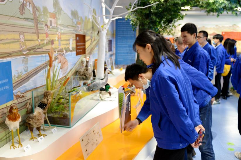 在公園管理員的導(dǎo)引下,我們拾級(jí)而上,參觀了科普館。這座科普館是以張家湖歷史、水文、生態(tài)為脈絡(luò),傾心打造的集生動(dòng)、趣味于一體的現(xiàn)代視聽(tīng)平臺(tái),還原了農(nóng)耕時(shí)代人類(lèi)休養(yǎng)生息的原貌和花鳥(niǎo)魚(yú)蟲(chóng)百態(tài)。走在曲曲折折的參觀回廊上,感覺(jué)耳朵不夠使,眼睛也不夠用,太多的信息總是撲面而來(lái)。同事們都在感嘆:真是不虛此行,既休閑、愉悅了身心,又學(xué)到了知識(shí),收獲滿(mǎn)滿(mǎn)。