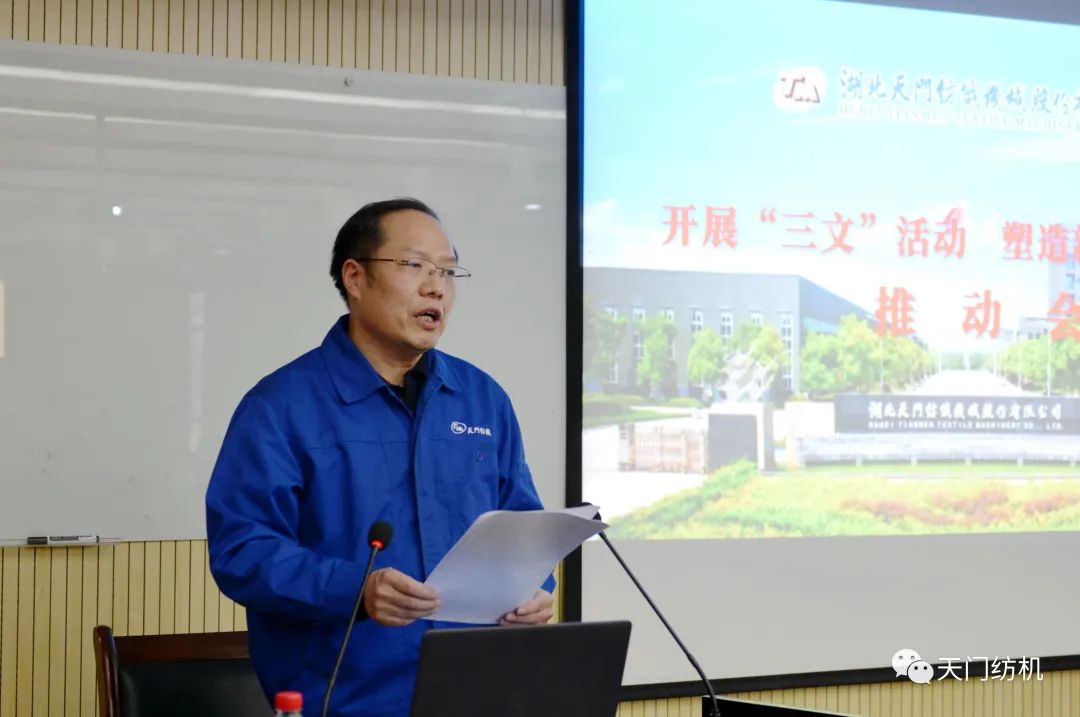 魯?shù)挛囊螅皇墙y(tǒng)一思想,提高認識:“三文”活動的理念既是在當前國際形勢復雜多變、新冠疫情反復無常、國內(nèi)經(jīng)濟受到嚴重沖擊、行業(yè)形勢日趨嚴峻的背景下提出的,目的和意義只有一個,就是要通過“三文”活動全面提高員工素質(zhì)、塑造新型員工隊伍、建立現(xiàn)代企業(yè)管理制度、實現(xiàn)高質(zhì)量發(fā)展,以應對復雜多變的國內(nèi)外經(jīng)濟形勢,讓天門紡機立于不敗之地;“三文”活動的理念也是公司的一種文化傳承。十多年前,公司制定實施“提精神、創(chuàng)精品、當精英”的“三精”戰(zhàn)略,并以此為引領,推動新產(chǎn)品開發(fā)、技術(shù)改造、品牌建設等工作,促進企業(yè)快速發(fā)展;兩年前,公司提出優(yōu)化社會、市場、內(nèi)部“三個”生態(tài)的理念,通過營造“以人為本”的內(nèi)部生態(tài)、共生共享的社會生態(tài)、利他共贏的市場生態(tài),把包容、共享、全球化的發(fā)展理念貫徹到企業(yè)生產(chǎn)經(jīng)營之中,影響到行業(yè)及社會多個層面,使公司形象得到極大提升、軟硬實力與日俱增,推動了企業(yè)高發(fā)展。“三文”與“三個生態(tài)”一脈相承,著重于員工素質(zhì)教育、塑造新型員工隊伍、營造良好的內(nèi)部生態(tài),其落腳點和最終目標與后者是完全一致的。同時,開展“三文”活動是企業(yè)文化建設永不過時、永遠不可或缺的重要內(nèi)容。通過文明禮儀教育,提高員工個人素質(zhì)、樹立企業(yè)良好形象,是當前公司生產(chǎn)經(jīng)營和優(yōu)化人力資源的內(nèi)在需要;通過開展文化素質(zhì)提升活動,引導員工樹立正確的世界觀、人生觀、價值觀是員工自身工作、生活和企業(yè)文化建設的主觀要求;通過文體活動,促進員工心身健康、增強企業(yè)凝聚力是企業(yè)和員工共同的美好愿望。因此,我們要把“三文”活動上升到企業(yè)生產(chǎn)經(jīng)營和文化建設一個更新的高度。二是明確特點,創(chuàng)新亮點:“三文”活動是長期性活動,是全方位的活動,是全員參與的活動,因此,我們一要堅持不懈,不斷努力;二要各方配合,通力協(xié)作;三要全體總動員,積極投入到各項活動中。同時,我們要多出主意、多想點子,創(chuàng)新活動的方式方法或形式內(nèi)容,創(chuàng)建天門紡機特色文化、特有文化和經(jīng)典文化。三是增強責任感,層層抓落實:在“三文”活動的通知中,我們已經(jīng)確定了組織機構(gòu),明確了目標任務,希望公司各部門負責人、活動小組各位負責同志,切實擔起責任,抓好落實。四是科學制定計劃,注重實效:我們在制定計劃時,既要合理安排時間,兼顧公司正常的生產(chǎn)經(jīng)營,又要統(tǒng)籌安排,協(xié)同推進,使生產(chǎn)經(jīng)營與文化建設相得益彰。