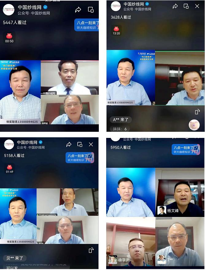 本次活動進行了6場直播。其間,天門紡機副總經(jīng)理楊文峰就紡織裝備的發(fā)展趨勢作了深度剖析,分享了并條機牽伸形式、傳動方式、換筒方式及自調(diào)勻整等方面的專業(yè)知識;天門紡機品控總監(jiān)樊早斌、售后服務(wù)中心主任于少波分別就并條機操作、工藝要求、維護保養(yǎng)、常見問題排查等方面的知識和經(jīng)驗進行了交流。線上學(xué)習(xí)氛圍濃厚,平均每場都有近6千人參加學(xué)習(xí),總計超3萬余人。