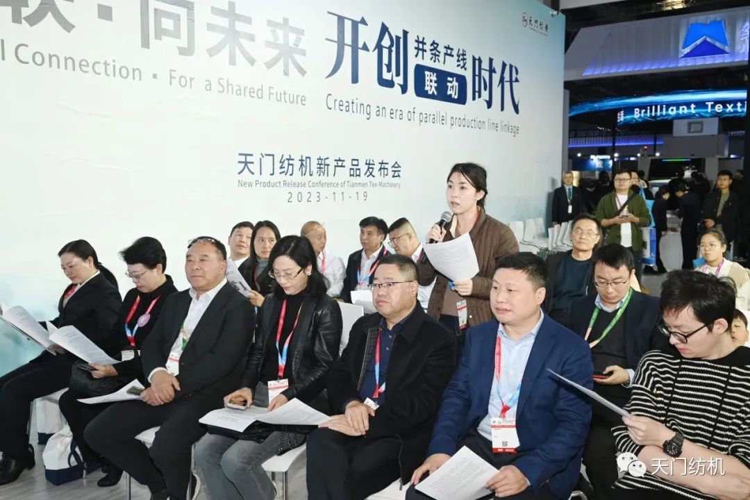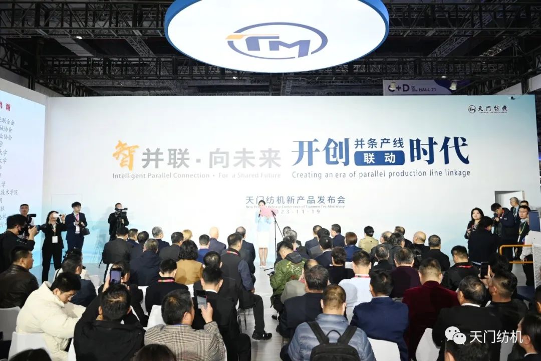 2023年11月19日,2022中國國際紡織機械展覽會暨ITMA亞洲展在國家會展中心(上海)拉開帷幕,天門紡機在展會上召開了主題為“智并聯(lián)?向未來——開創(chuàng)并條產(chǎn)線聯(lián)動時代”的新產(chǎn)品發(fā)布會。