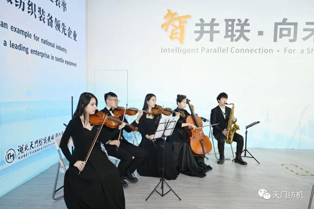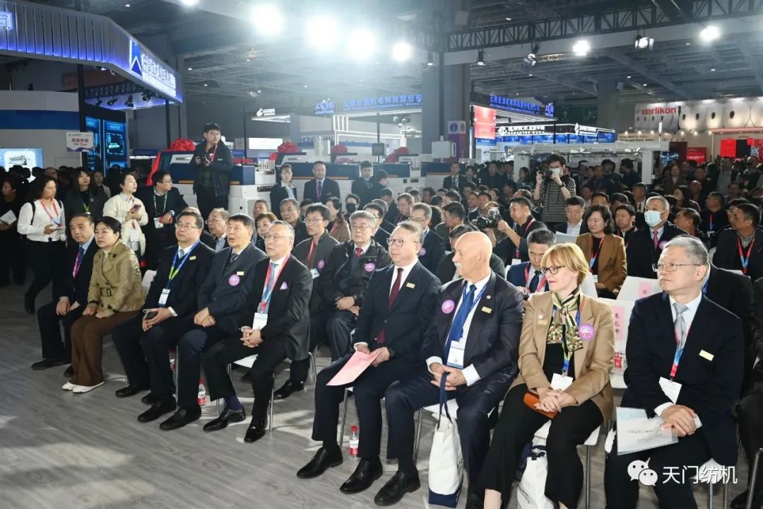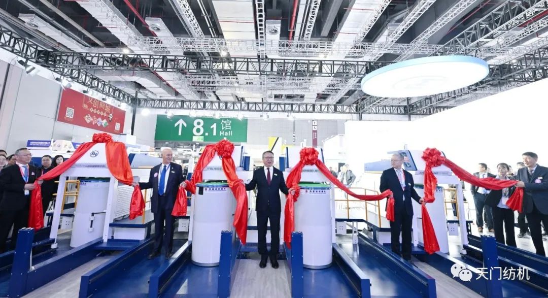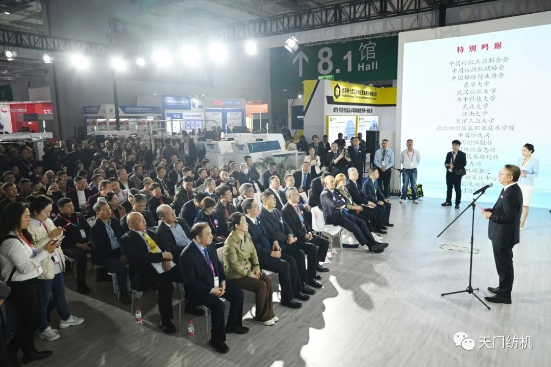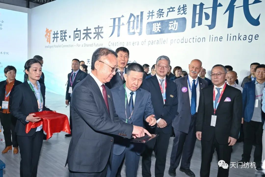 中國紡織工業(yè)聯(lián)合會會長孫瑞哲,副會長夏令敏、徐迎新,老領(lǐng)導(dǎo)張延愷副會長和歐洲紡織機械制造商委員會主席Mr. Ernesto Maurer等嘉賓共同揭幕,天門紡機T2、T3系列新產(chǎn)品正式亮相。