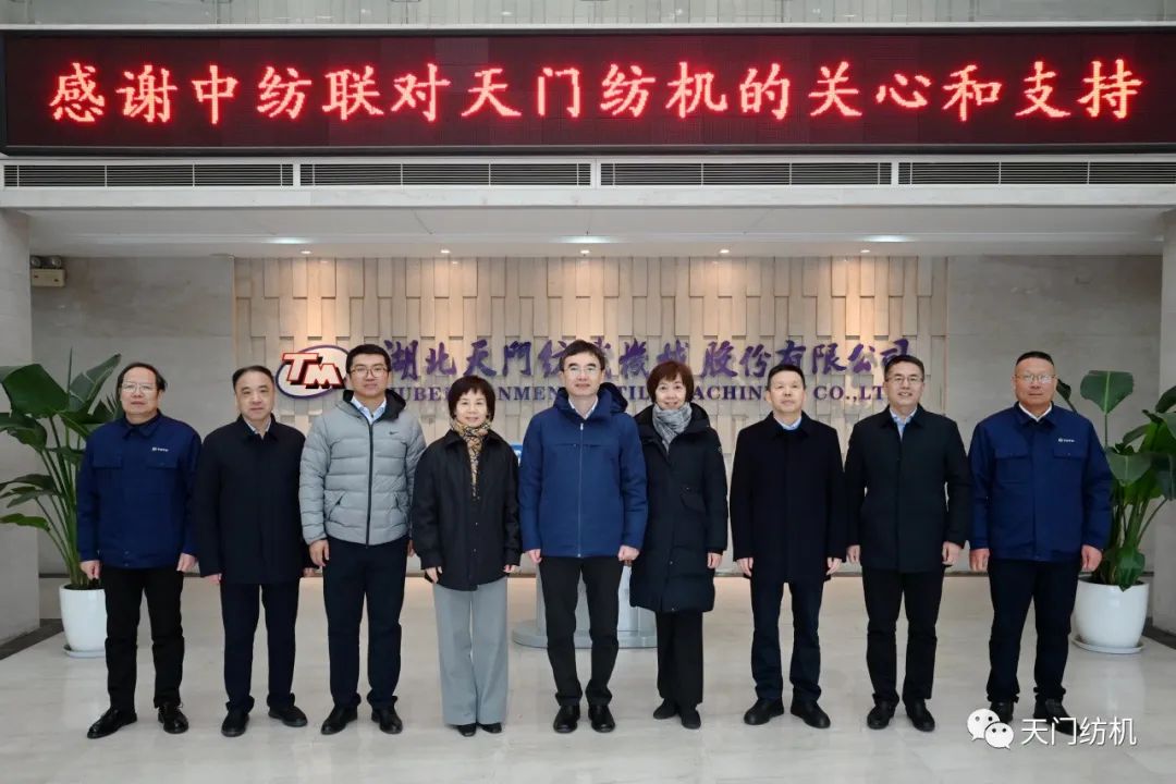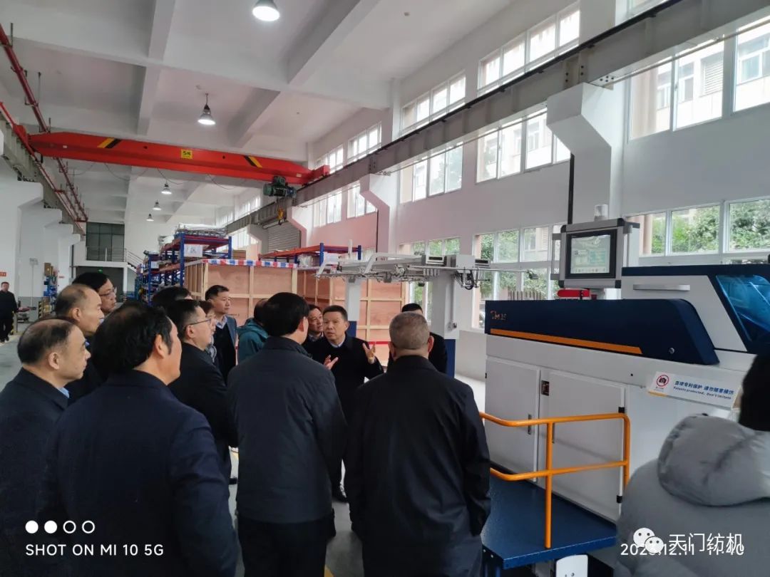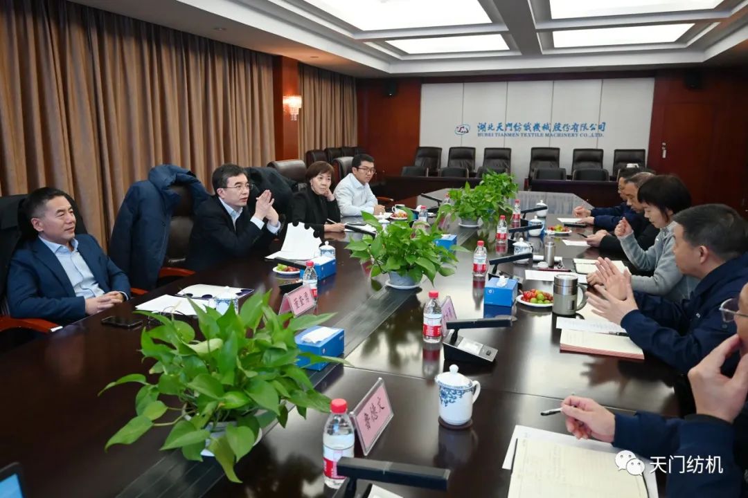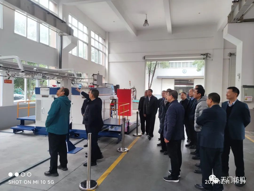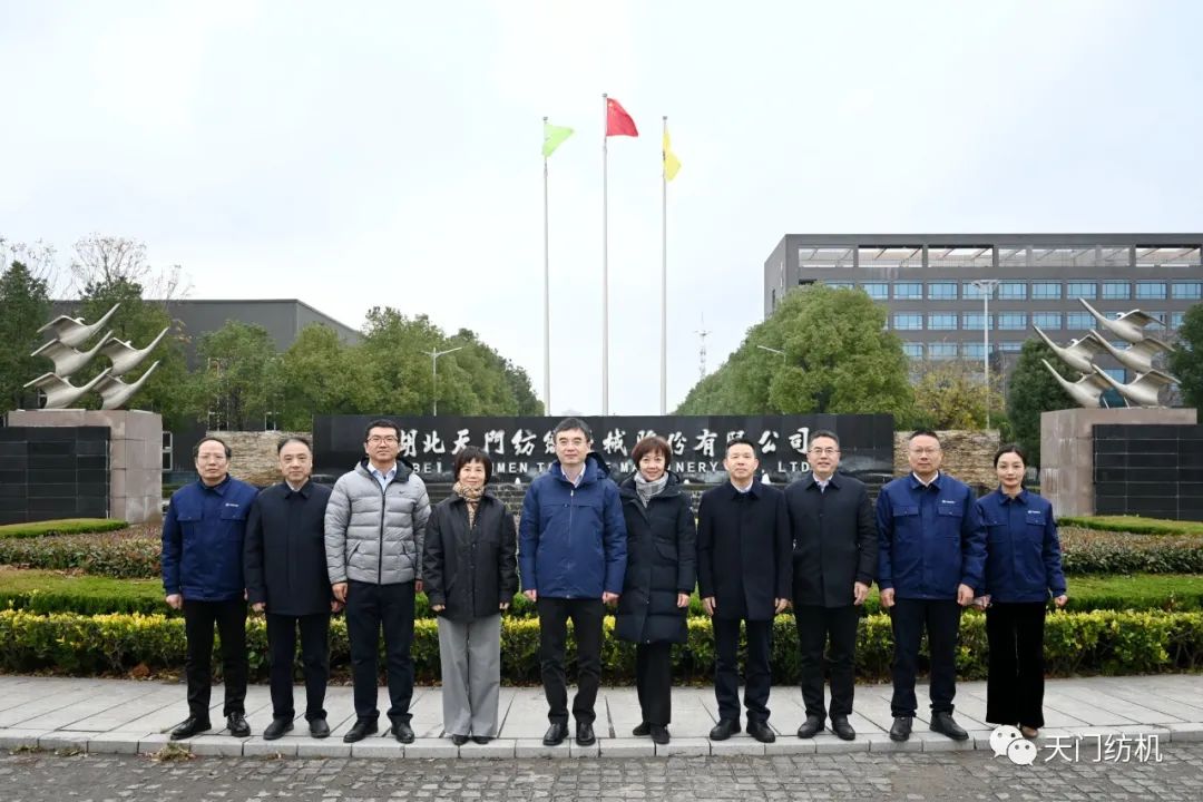 2023年12月11日,中國紡織工業(yè)聯(lián)合會副會長端小平,中國紡織工業(yè)聯(lián)合會信息中心黨委書記、社會責任辦主任閻巖,中國棉紡織行業(yè)協(xié)會會長董奎勇、副會長景慎全等領導專程調研天門紡機位于武漢的研發(fā)中心及天門基地。