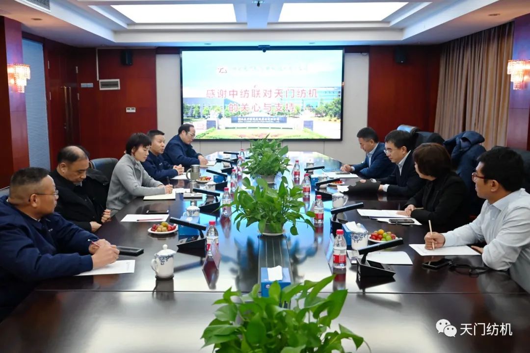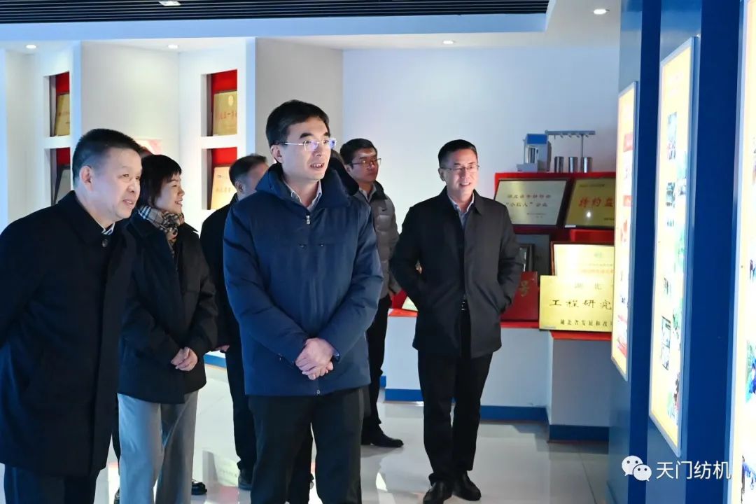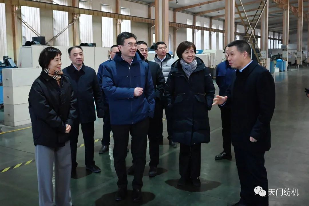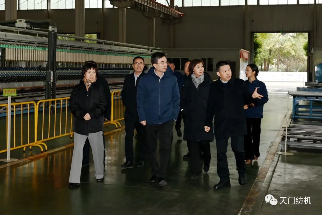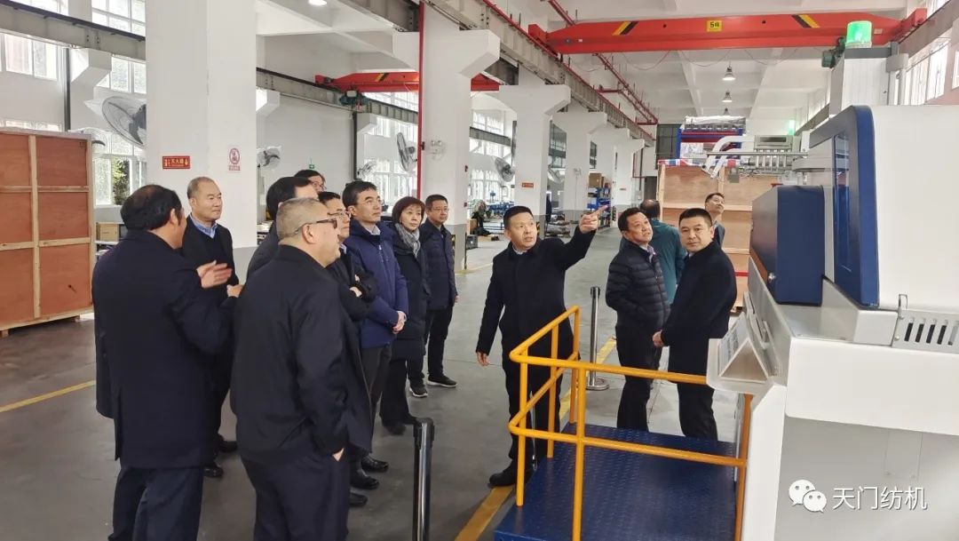 2023年12月11日,中國紡織工業(yè)聯(lián)合會副會長端小平,中國紡織工業(yè)聯(lián)合會信息中心黨委書記、社會責任辦主任閻巖,中國棉紡織行業(yè)協(xié)會會長董奎勇、副會長景慎全等領導專程調研天門紡機位于武漢的研發(fā)中心及天門基地。