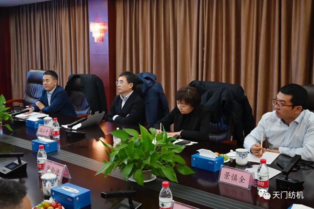 在聽取匯報后,端小平副會長對天門紡機的發(fā)展思路及成績給予了充分肯定。他強調,天門紡機的創(chuàng)新理念和生態(tài)理念具有時代特色,是企業(yè)不斷發(fā)展的動力源泉。在行業(yè)面臨諸多挑戰(zhàn)的當今,天門紡機作為骨干企業(yè),一定要堅定信心,直面機遇、挑戰(zhàn),探索全球化布局,推進轉型升級,為行業(yè)發(fā)展作出更大貢獻。