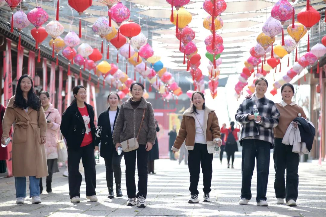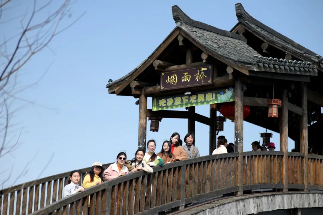 游覽過程中,女工們有的參觀小鎮(zhèn)書院,了解當(dāng)?shù)氐臍v史文化;有的在小銅人雕塑旁合影留念,定格美好時光;有的登上文昌閣遠(yuǎn)眺,感受湖光山色。