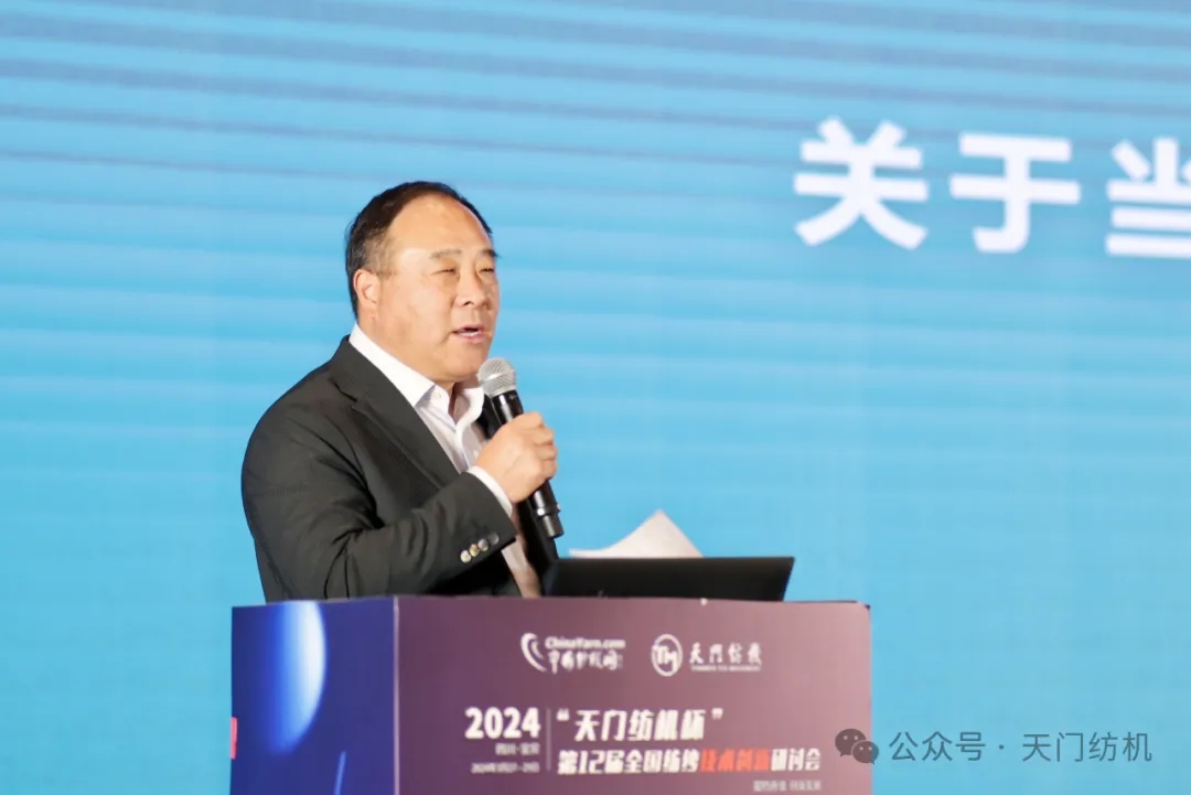 公司焦倫進(jìn)總經(jīng)理介紹了天門紡機(jī)產(chǎn)品開發(fā)情況,剖析了行業(yè)形勢(shì)和企業(yè)面臨的機(jī)遇與挑戰(zhàn)。他說,天門紡機(jī)作為并條機(jī)的專業(yè)生產(chǎn)廠家,不斷加大研發(fā)投入,專注于技術(shù)創(chuàng)新和產(chǎn)品研發(fā),不斷探索新技術(shù),成功研發(fā)并推向市場的TM11、TM13、TM15、TM17系列并條機(jī)已成為行業(yè)主力產(chǎn)品。公司倡導(dǎo)“并條工序全自調(diào)勻整”的理念后,推出了TM19大圈裝高速自調(diào)勻整并條機(jī),并已在多家國內(nèi)知名紡織企業(yè)推廣應(yīng)用,效果十分明顯。在2023年11月舉行的上海國際紡機(jī)展覽會(huì)上,公司推出的TM25、TM27、TM29、TM35等四款并條機(jī),因擁有智能在線檢測、一控多軸多臺(tái)、數(shù)據(jù)管理云平臺(tái)等技術(shù),引起了業(yè)界廣泛關(guān)注,得到了高度評(píng)價(jià);他強(qiáng)調(diào),2024年,紡織行業(yè)仍將處于產(chǎn)業(yè)恢復(fù)期,市場逐漸回暖。同時(shí),紡織行業(yè)正處在朝高端化、智能化、綠色化發(fā)展的轉(zhuǎn)型升級(jí)關(guān)鍵期,市場潛力大,積極向好的發(fā)展趨勢(shì)逐步顯現(xiàn)。因此,2024年將是機(jī)遇與挑戰(zhàn)并存、困難與希望同在的一年。只要我們保持定力,加強(qiáng)交流合作,群策群力,不斷推進(jìn)數(shù)字化轉(zhuǎn)型和智能化改造,加快發(fā)展新質(zhì)生產(chǎn)力,就一定能開創(chuàng)更加美好的未來。