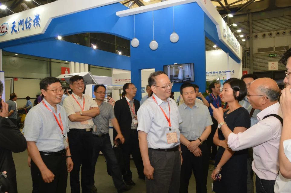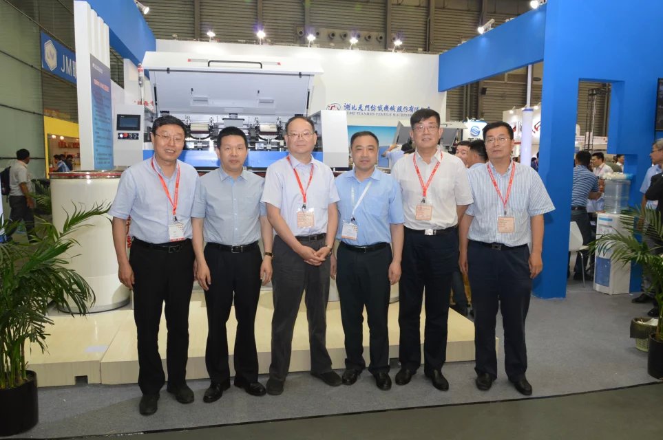 中國紡織工業(yè)聯(lián)合會副會長高勇、楊紀朝等領導蒞監(jiān)公司展位,聽取了董事長沈方勇對企業(yè)及產(chǎn)品等情況介紹,并與公司領導親切合影。