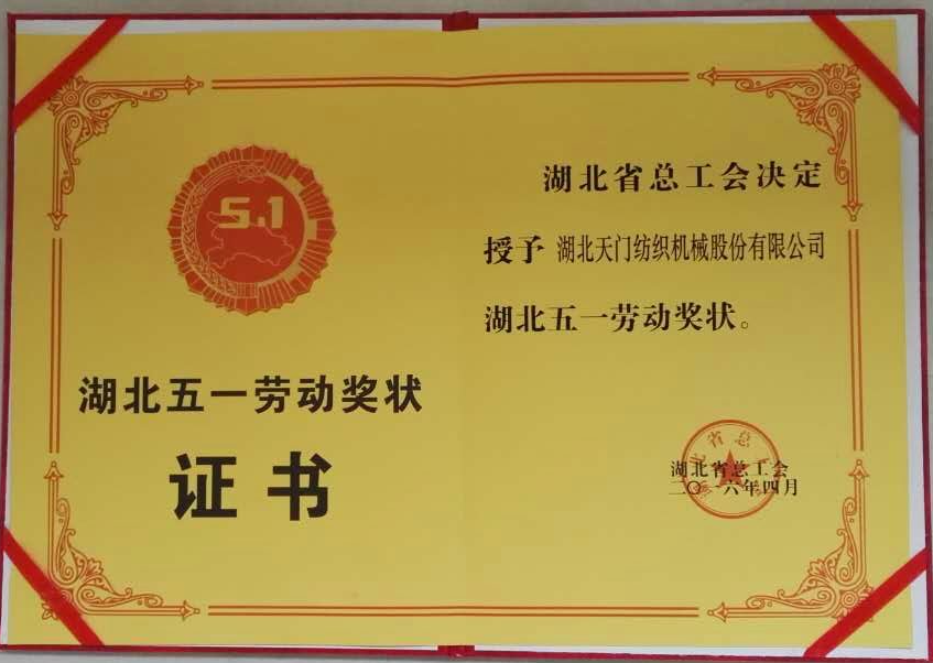 近日,公司傳來喜訊。4月28日在武漢東湖賓館召開的湖北省慶祝五一國際勞動節(jié)暨表彰大會上,湖北天門紡織機械股份有限公司被省工會授予“五一勞動獎狀”,這是天門市本年度唯一上榜單位。