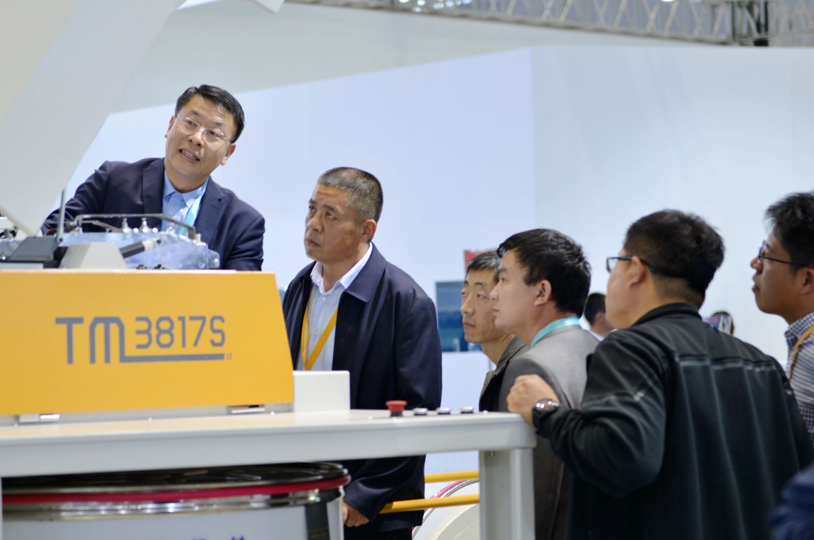 中國紡織機(jī)械協(xié)會(huì)副會(huì)長、秘書長徐林(右2),中國紡織機(jī)械協(xié)會(huì)總工程師祝憲民(左2)等領(lǐng)導(dǎo)在公司展位合影