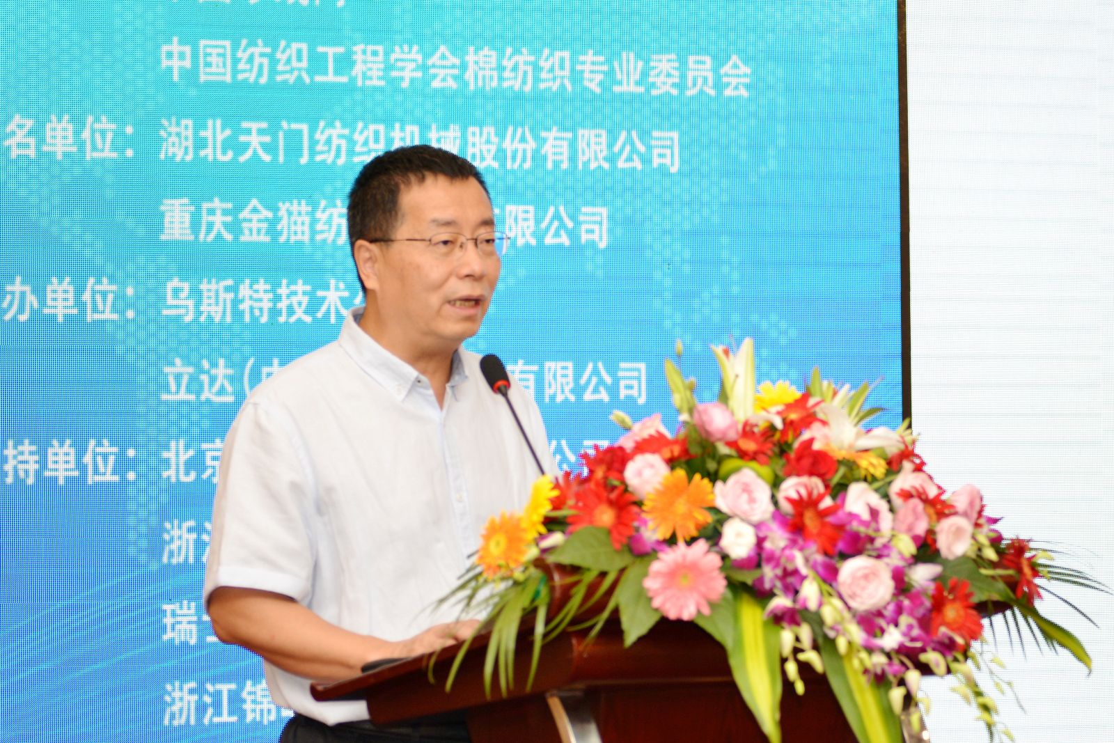 中國棉紡織行業(yè)協(xié)會(huì)葉戩春副會(huì)長(zhǎng)、中國紡織工程學(xué)會(huì)棉紡織專業(yè)委員會(huì)副主任兼秘書長(zhǎng)謝春萍教授、湖北天門紡織機(jī)械股份有限公司焦倫進(jìn)總經(jīng)理、重慶金貓紡織器材有限公司楊崇明董事長(zhǎng)等嘉賓分別為大會(huì)致辭。