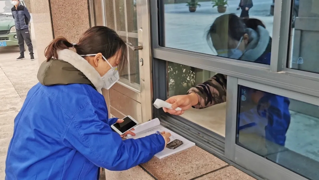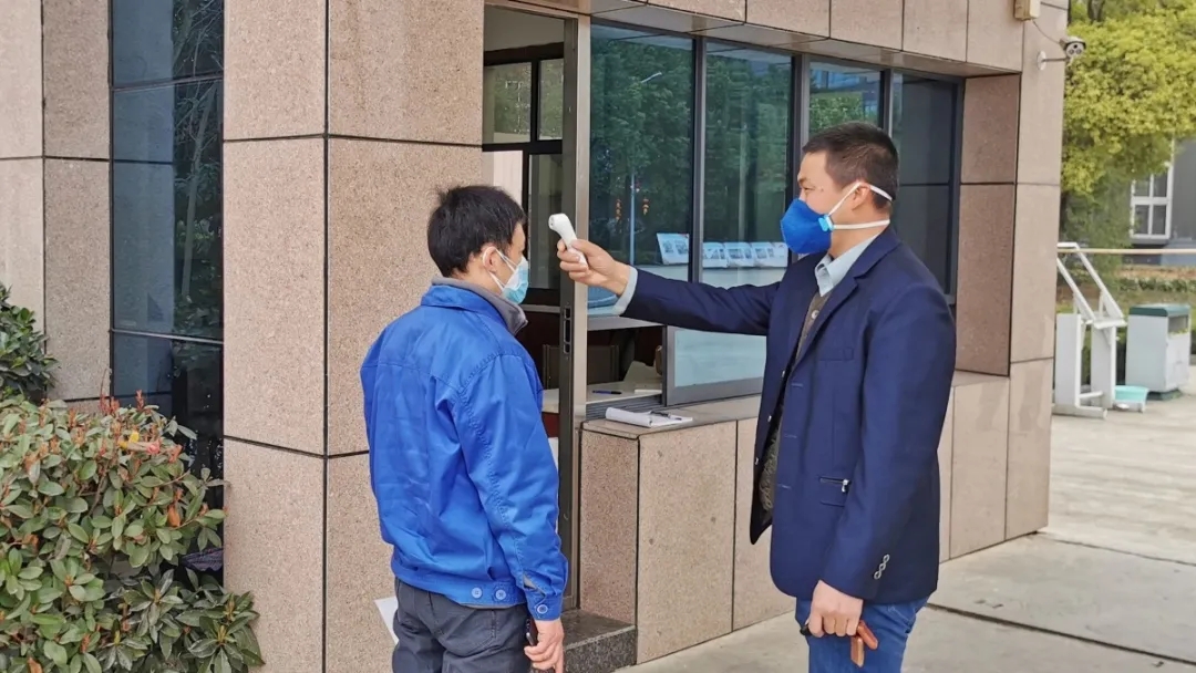 公司在大門設(shè)置了防控崗,對進(jìn)出人員做好消毒、體溫測量記錄等防護(hù)措施