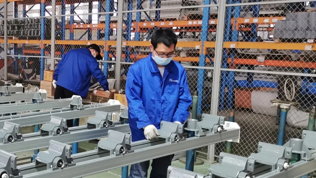 裝配工曾獻(xiàn)軍對裝箱的導(dǎo)條架進(jìn)行檢查