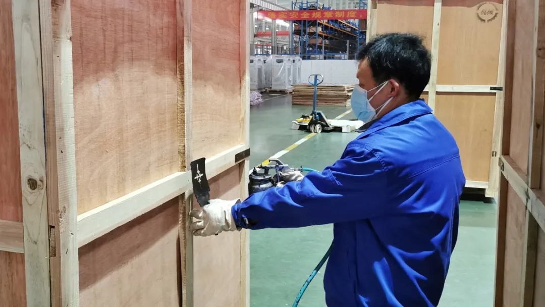 公司副總胡俊紅對發(fā)貨包裝箱型號、標(biāo)識等內(nèi)容進(jìn)行噴