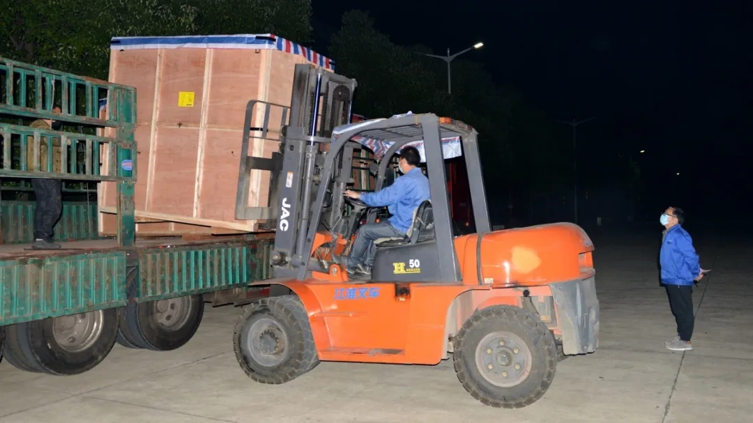 夜幕降臨,公司叉車司機(jī)姚順華抓緊時間將包裝好的產(chǎn)品進(jìn)行裝車作業(yè)