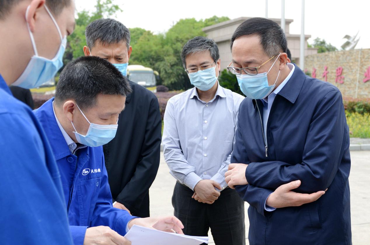 4月23日,國(guó)家衛(wèi)健委副主任于學(xué)軍率工作組,在湖北省衛(wèi)健委副主任涂遠(yuǎn)超、天門市委書記莊光明、天門市代理市長(zhǎng)楊興銘等領(lǐng)導(dǎo)的陪同下,到天門紡機(jī)調(diào)研指導(dǎo)企業(yè)疫情防控及復(fù)工復(fù)產(chǎn)情況。