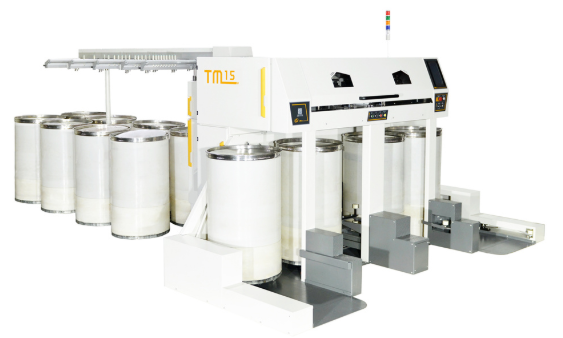 TM19并條機(jī)創(chuàng)新研發(fā)輸出條筒為Φ1000×1200 超大卷裝雙眼帶短片段自調(diào)勻整并條機(jī),首創(chuàng)并條工序全勻整概念,填補(bǔ)行業(yè)空白,滿足市場需要;創(chuàng)新研究自動集中潤滑系統(tǒng),保證軸承潤滑的精準(zhǔn)度,提高軸承使用壽命,減少用工;創(chuàng)新研發(fā)雙眼單用的自調(diào)勻整并條機(jī);創(chuàng)新研發(fā)15寸真彩大屏,全新操作系統(tǒng),高端的交互體驗;創(chuàng)新研發(fā)在線檢測、物聯(lián)網(wǎng)技術(shù)與客戶端數(shù)據(jù)平臺聯(lián)網(wǎng):利用無線手持終端,離機(jī)操作,給生產(chǎn)管理帶來了極大的方便;各機(jī)臺可與客戶終端聯(lián)結(jié),便于客戶數(shù)據(jù)的采集與管理。
