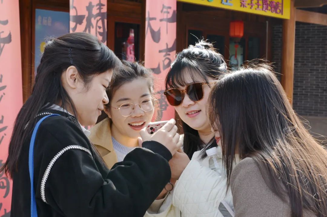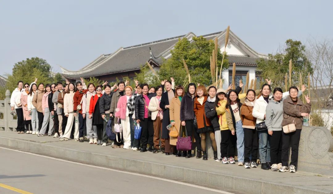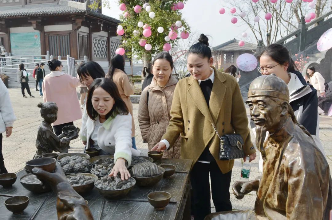 游覽過程中,女工們有的參觀小鎮(zhèn)書院,了解當(dāng)?shù)氐臍v史文化;有的在小銅人雕塑旁合影留念,定格美好時光;有的登上文昌閣遠(yuǎn)眺,感受湖光山色。