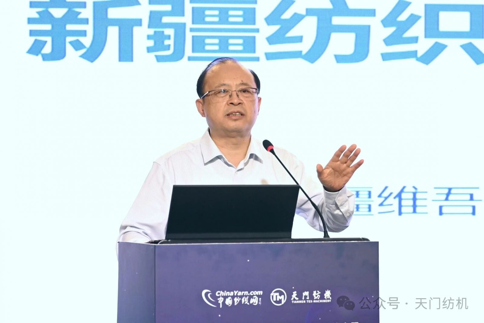 本次會(huì)議由天門紡機(jī)冠名,中國紗線網(wǎng)與新疆維吾爾自治區(qū)紡織工程學(xué)會(huì)共同主辦,全國政協(xié)委員、新疆維吾爾自治區(qū)棉花產(chǎn)業(yè)發(fā)展領(lǐng)導(dǎo)小組辦公室主任梁勇,新疆生產(chǎn)建設(shè)兵團(tuán)第三師圖木舒克市黨委常委、副師長丁偉,天門紡機(jī)董事長沈方勇,中國紗線網(wǎng)總編王果剛等400余位領(lǐng)導(dǎo)、專家及代表參加會(huì)議,同步開啟的在線直播超過1萬人收看。