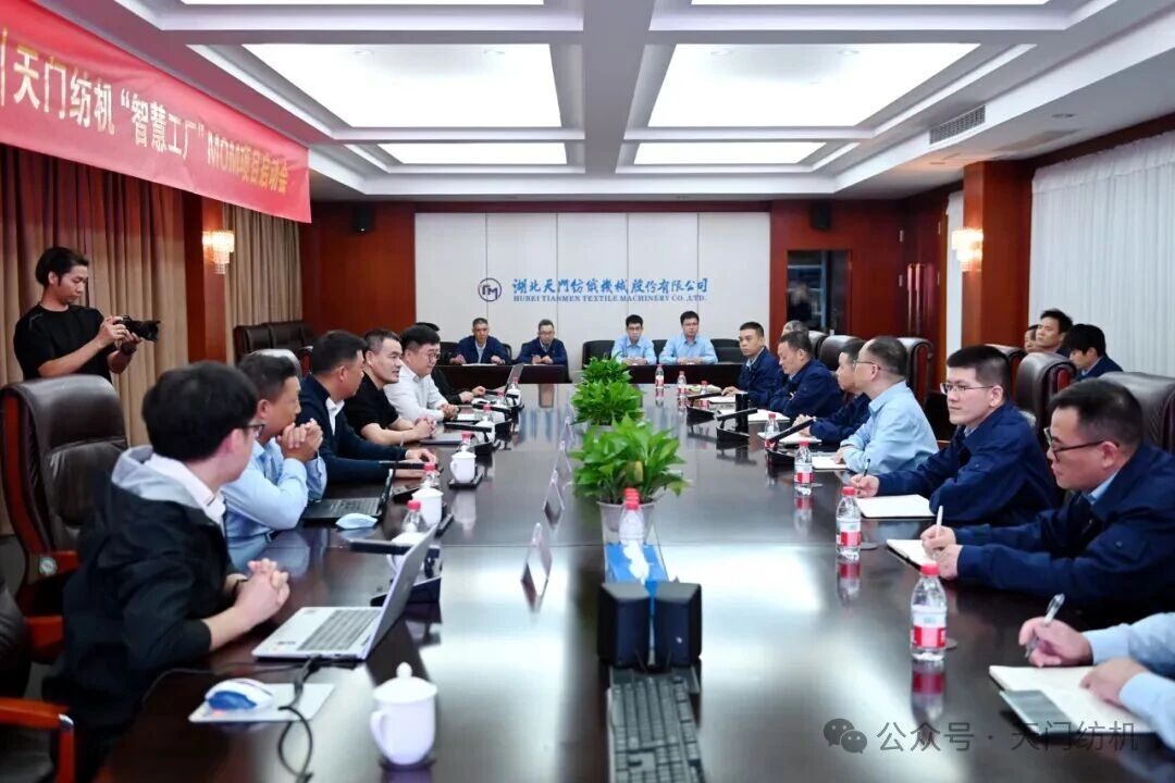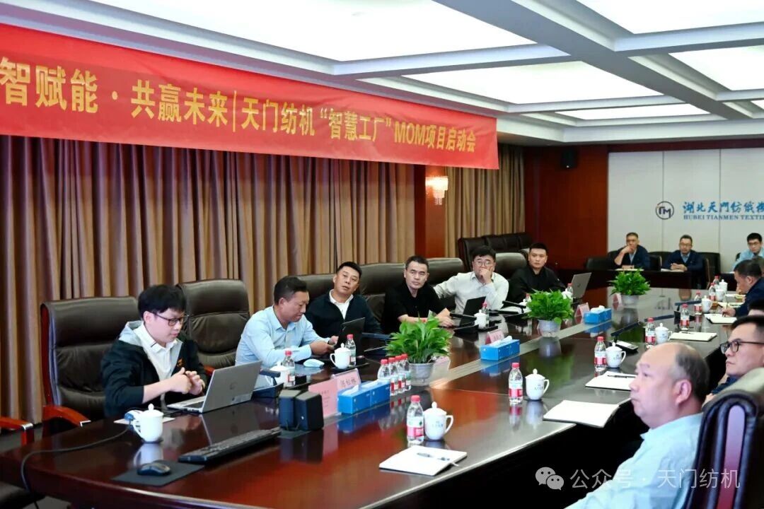 2025年10月15日下午,天門紡機(jī)在科技樓五樓會(huì)議室召開(kāi)MOM系統(tǒng)項(xiàng)目啟動(dòng)會(huì)。公司董事長(zhǎng)沈方勇、項(xiàng)目合作方廣東盤古信息科技股份有限公司CTO劉鵬、副總經(jīng)理游畢濤及項(xiàng)目相關(guān)負(fù)責(zé)人出席會(huì)議,公司副總經(jīng)理胡進(jìn)紅、鄧俊杰,有關(guān)部門、車間負(fù)責(zé)人和工作人員參加了會(huì)議。